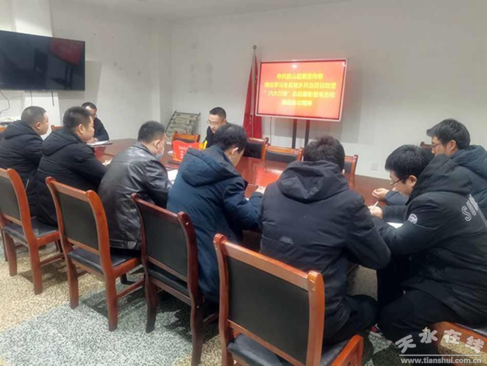 1月18日,武山县委宣传部召开全体干部会议,传达学习全县城乡共治百日攻坚“六大行动”总结表彰暨常态化推进会会议精神,并对城乡共治“六大行动”氛围营造工作进行再安排、再部署。