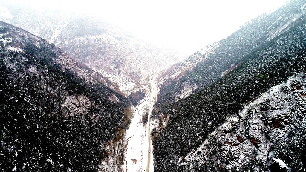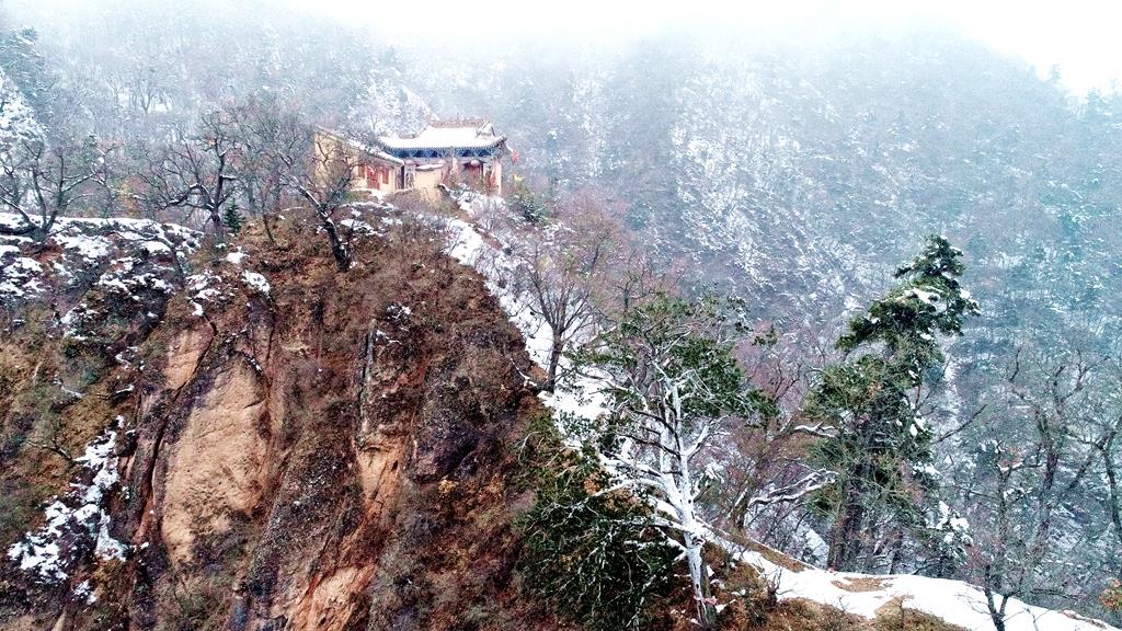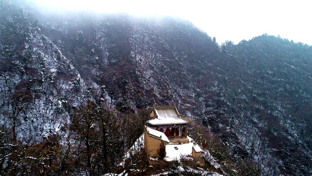 雪后的老君山宛如仙境。航拍下的太清胜境、石峡飞瀑、朝阳古洞、棋盘仙迹、鸡冠叠翠、锅底烟云、幽谷神泉、瞭台瞰渭等君山八景和悬崖白松、老君古殿、瘦驴脊梁、掌印石、如意墩、飞云峰、青牛岭、炼丹台、升云路、攀天梯、积翠亭等名胜美不胜收。