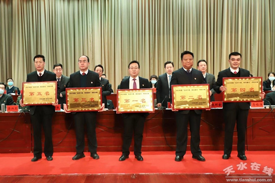 (对2021年度“五评十星、双向量化”考核排名前5名的洛门镇等5个乡镇颁奖)