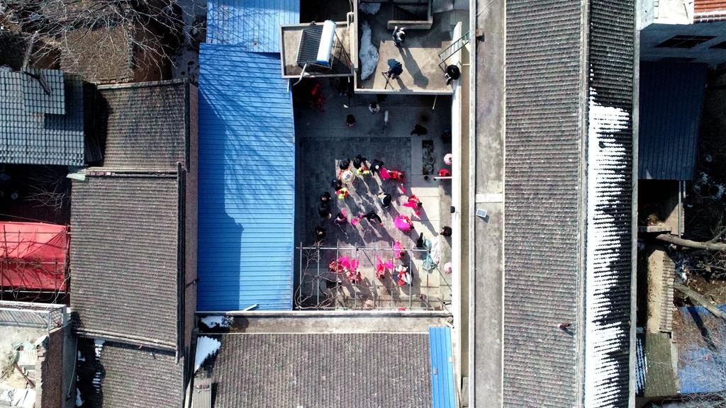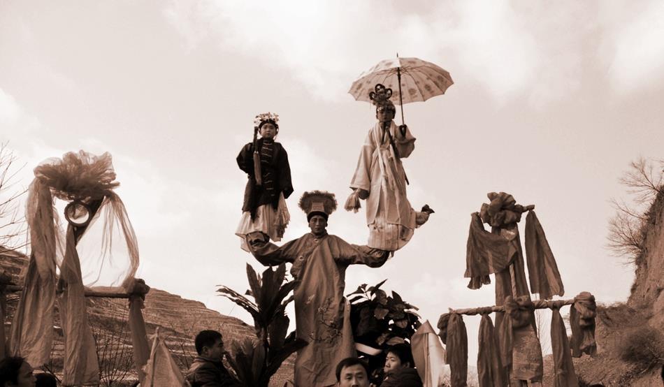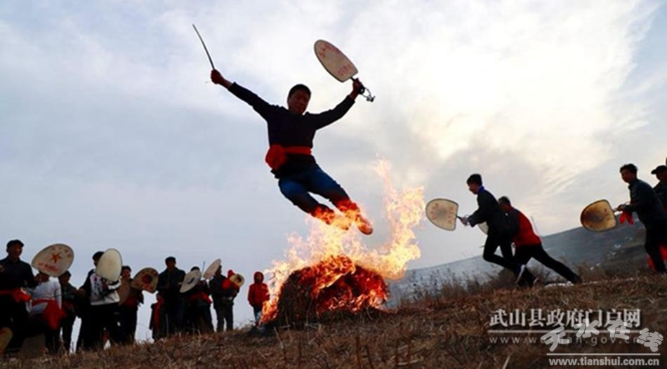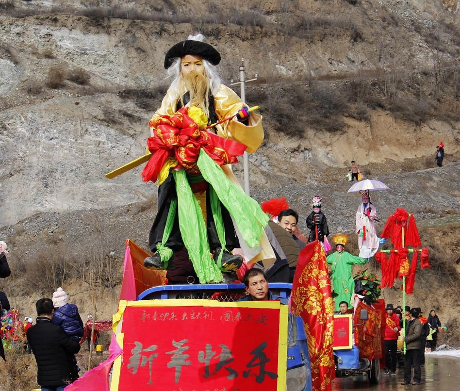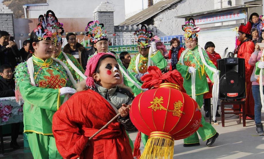 据市级非遗“武山秧歌”代表性传承人马福来介绍,渭河北岸的䃰石川自古文脉昌盛,文化发达,耍社火唱秧歌是当地群众过年不可或缺的风俗,传统文化基因早已融入当地群众的日常生活。“你看,这是膏药灯,这是装扮的妖婆,这是表演小丑的,这是旦娃子,有丑有旦,有说有唱,载歌载舞,‘耍秧歌’,为的是热火,图的是好彩头。”