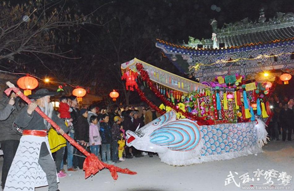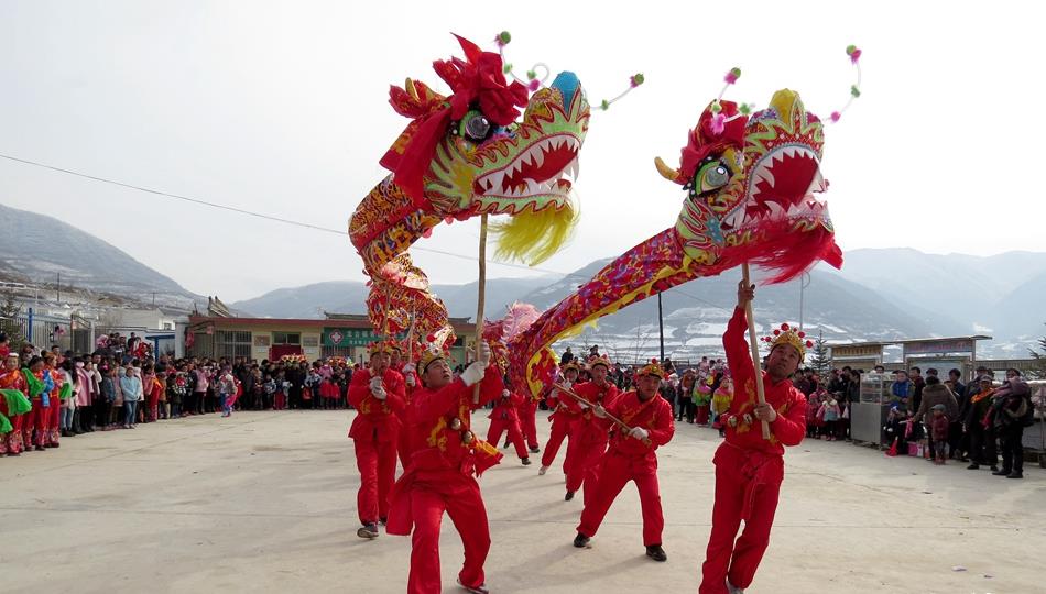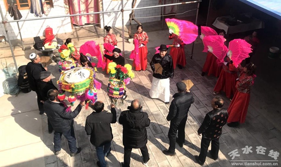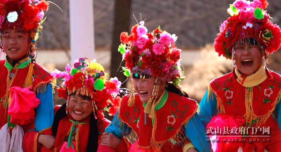 武山县融媒体中心2月17日讯(记者 薛小瑞 王正平 李竹青 马国栋 马中奇)“正月里来是新年,娘家住在䃰石川,秧歌耍的欢。敲锣打鼓喜洋洋,姊妹一同看爹娘,穿上好衣裳。”“上去到麻家坪,小唱实好听,双锁山、掐葡萄唱的好,听了还想听。来到刘家坪,韩湘子度灵英,四女娃上寿演的好,老俩口笑盈盈。”……