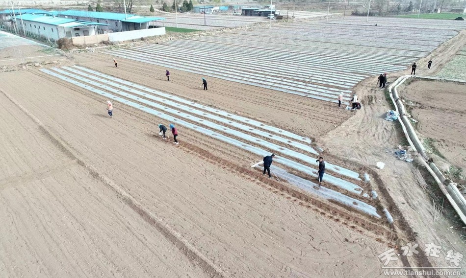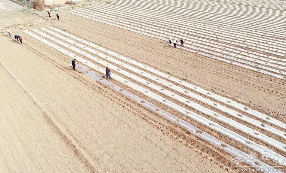 武山县融媒体中心3月18日讯(记者 郭永强 赵超 邓晨阳 王继明)一场春雨过后,武山县鸳鸯镇的群众抢抓墒情,覆膜种豆角,挖土栽药材,用“农”墨描绘多彩“春耕图”。