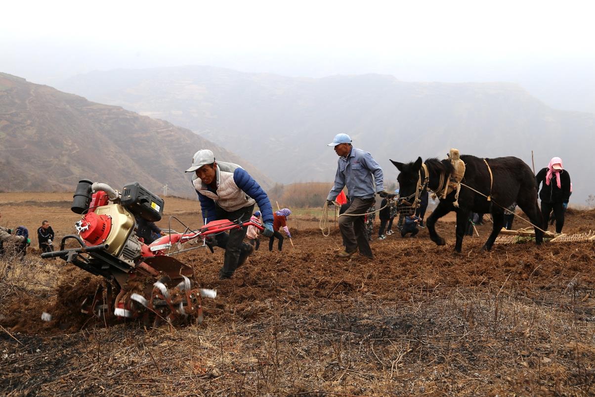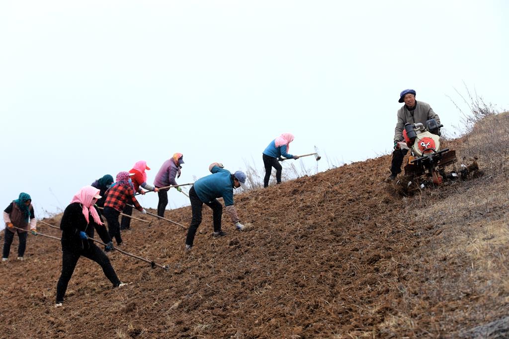 杨河镇夏庄村,地势高寒,山势陡峭,气候湿润,适宜种植藜麦、玉米、小麦、油菜、马铃薯等农作物。在这里曾经撂荒已久的土地,历经挖掘机和推土机的耕作,地被摊平、翻新,重换生机。放眼过去,在陡峭的片片农田里,干群团结,一起耕地撒种,埋下丰收的希望。