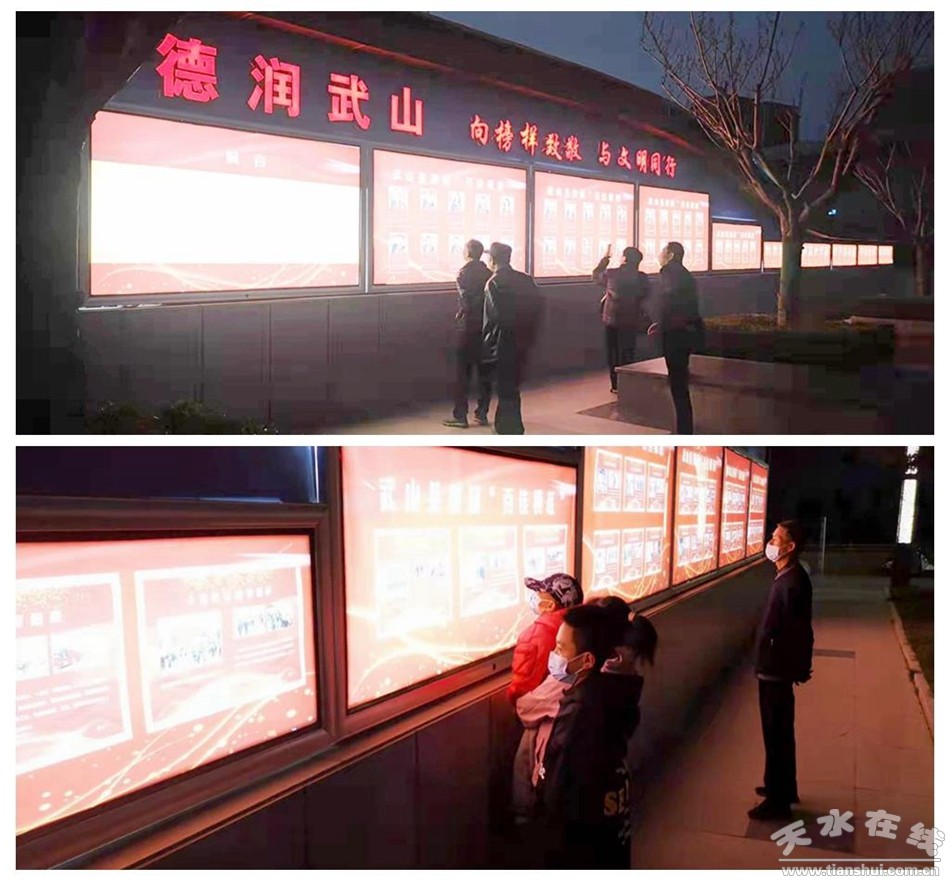 如今的武山,是有传承文明与美德的一方“沃土”,身边的典型遍地开花,学习的榜样无处不在,走在大街小巷,一幅幅形象生动的版面,营造了浓厚的宣传氛围,组成了一面面集教育、宣传于一体的文化长廊,让人深切的感受到社会正能量和文明新风无处不在。一直以来,文明始终是这座城市不变的主题,崇德向善的传统文化精髓已深深融入百姓的生活之中,历史文明与现代文明更是交相辉映,迸发着绚丽的光彩。