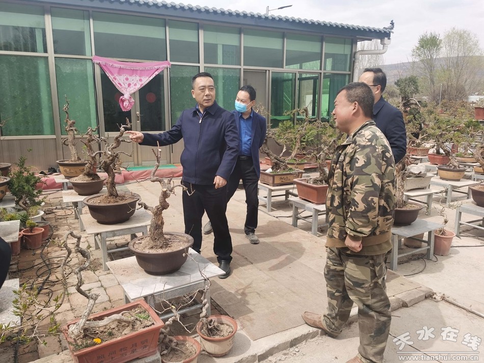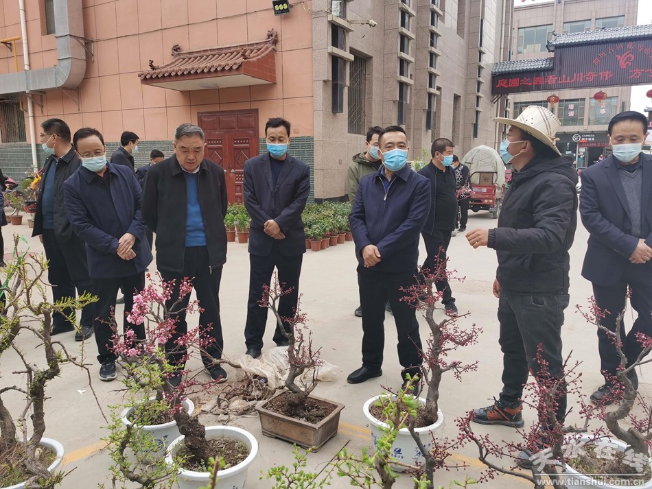 在洛门花鸟虫鱼市场和和艺园种植专业合作社,王新强详细了解春季绿化苗木和盆景市场供应,与商户和群众亲切交流,询问苗木价格、市场供应和销售等情况。他强调,要根据市场需求,大力发展绿化苗木和花卉盆景等产业,提高苗木和花卉盆景质量,满足市场需要,努力提高群众收入。要加大宣传力度,积极筹备渭川盆艺博览会,对各类盆景盆艺进行集中展销,进一步提高渭川盆艺的知名度和影响力。