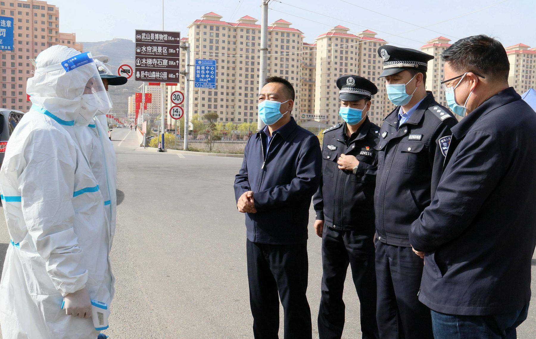3月27日,武山县委书记王新强看望慰问疫情防控一线工作人员。县委常委、统战部部长李森,县委常委、宣传部部长胡丽霞,县委常委、城关镇党委书记王想成,县委常委、组织部部长宋昌华一同慰问。