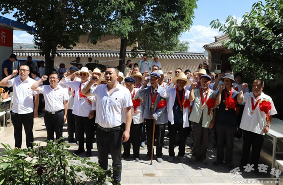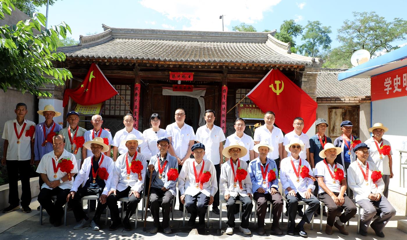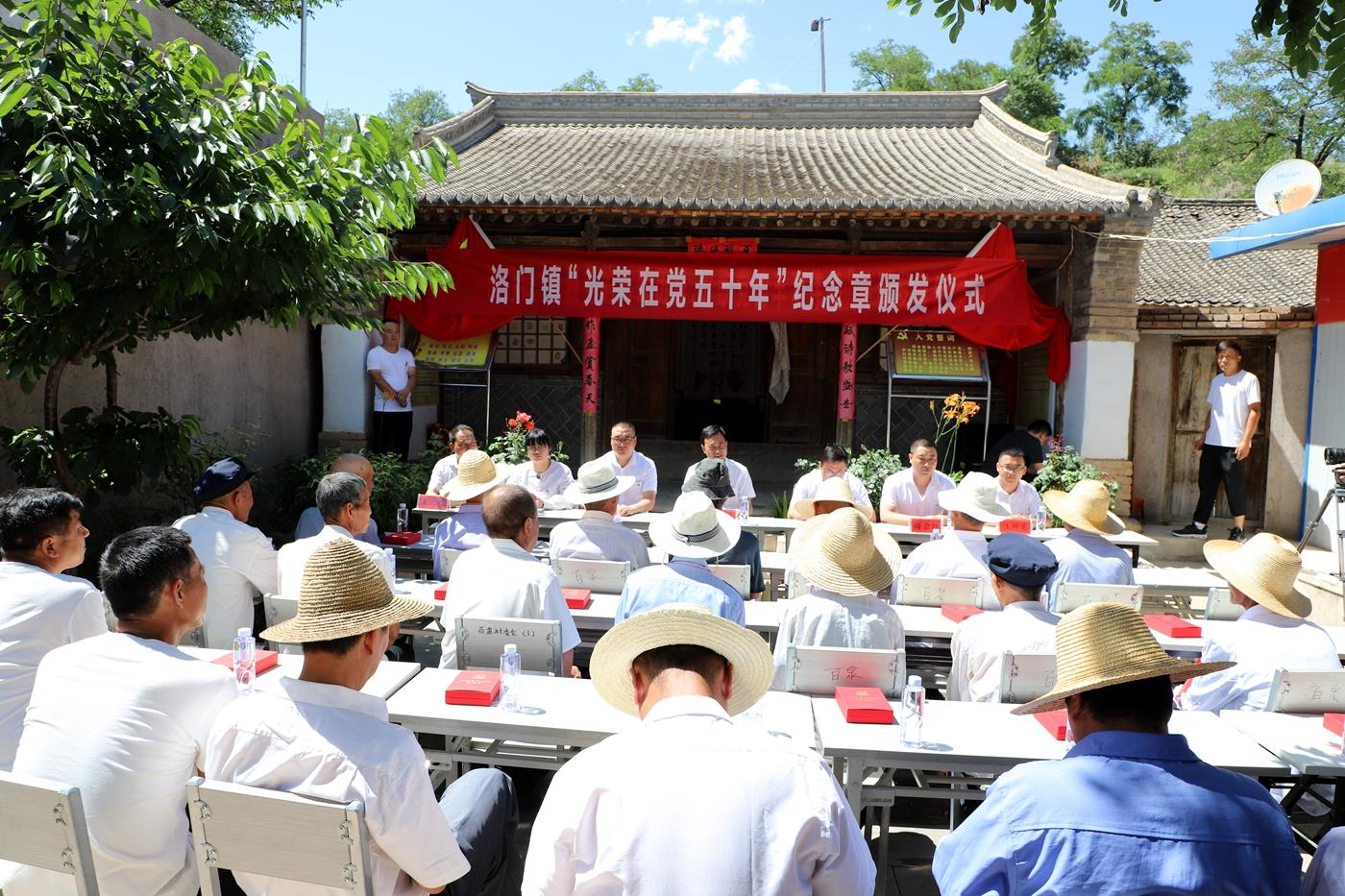 武山县融媒体中心6月29日讯(记者 薛妍 赵磊 马中奇)为了体现和传递党中央对老党员、老同志的重视关心,6月28日,洛门镇全体党委班子成员、全镇党龄50年以上老党员,在中国共产党天水地区第一个党支部——刘坪党支部旧址,举行了2022年度“光荣在党五十年”纪念章颁发仪式暨“回顾党的光辉历程,讴歌党的丰功伟绩”共谋发展座谈会活动。