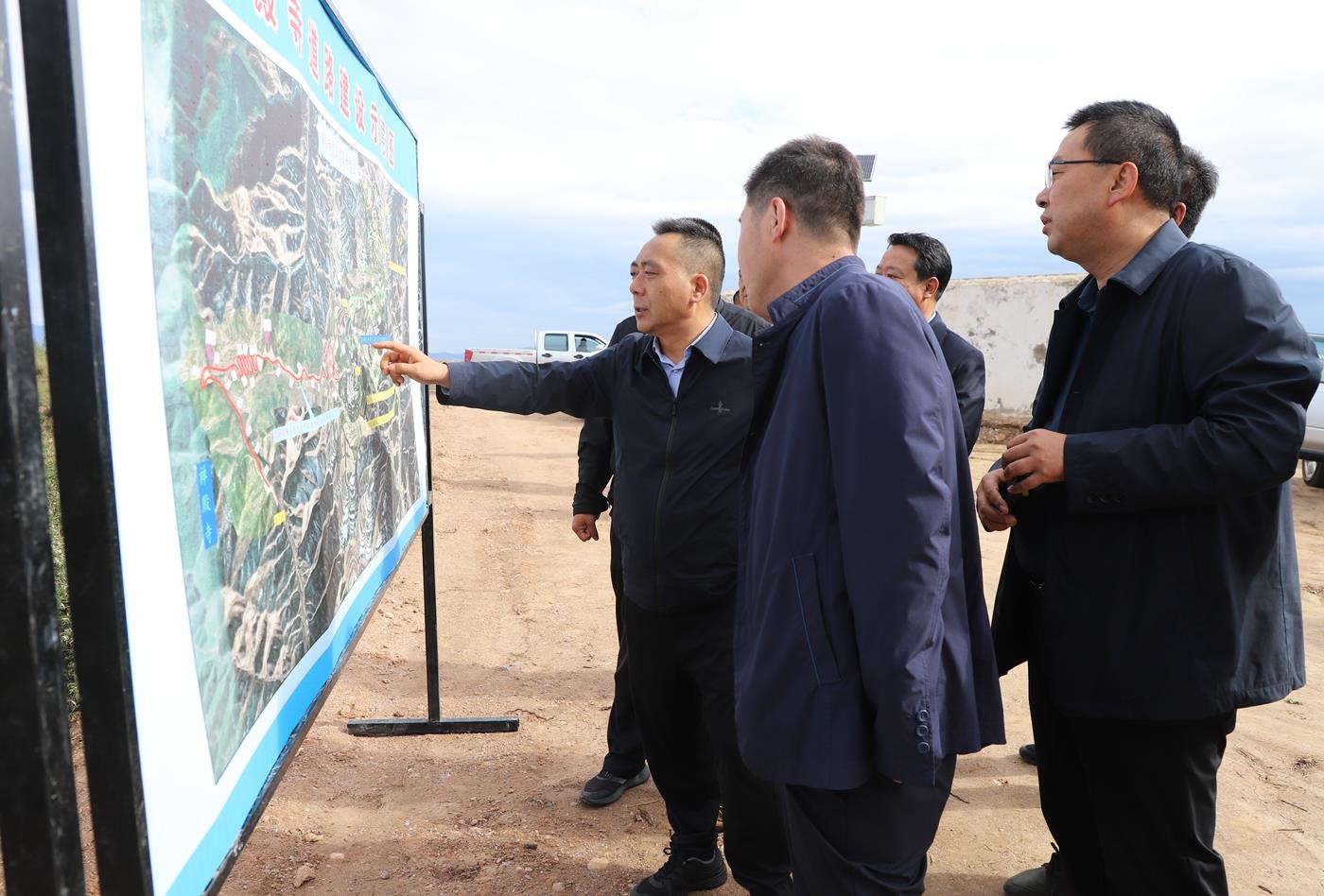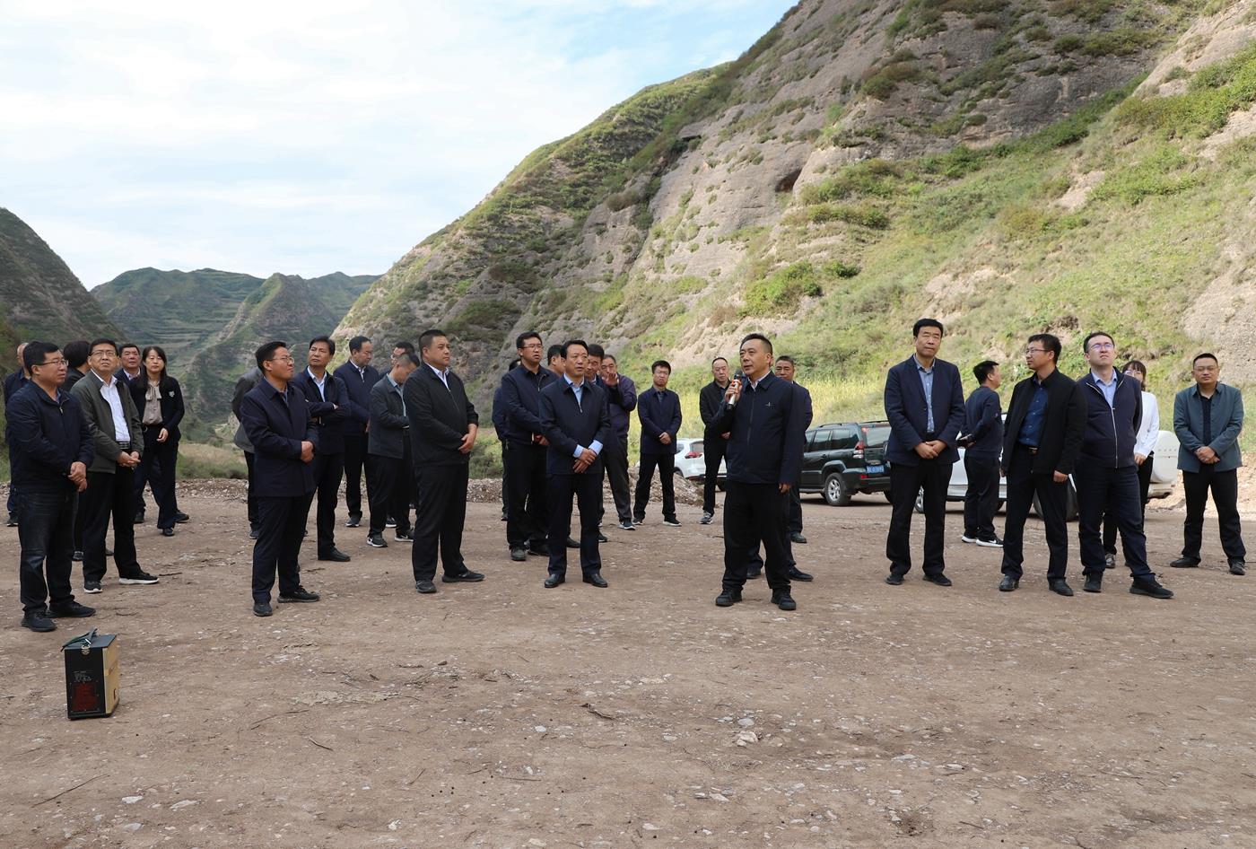 会前,与会人员现场观摩了高楼镇燕儿屲提灌旧址、铁笼山大景区旅游公路建设情况。