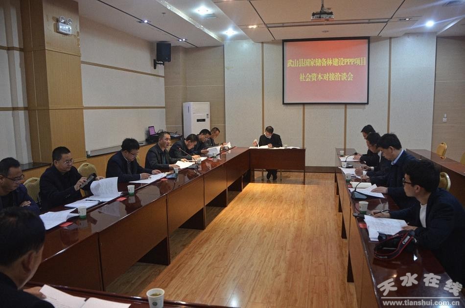 10月19日,副县长凌鹏亮主持召开武山县国家储备林建设PPP项目社会资本对接洽谈会。项目有意向社会资本方甘肃省建设投资(控股)集团有限公司以及县林草局、财政局、审计局、水务局、农发行武山县支行、渭川集团等部门和单位相关人员参加会议。