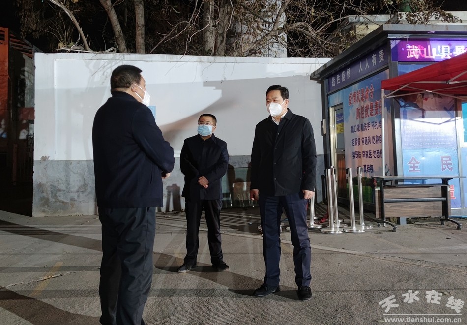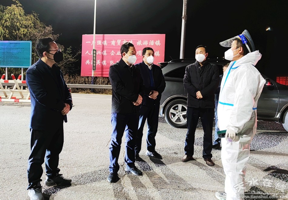 11月30日晚,武山县委副书记、县长王志成带领县政府办、县交通局等单位负责人,深入武山火车站、天定高速洛门出口、310国道洛门旱坪交通查验点等地,现场督查指导疫情防控工作,看望慰问一线工作人员。县人大常委会副主任、洛门镇党委书记张志林一同督查。