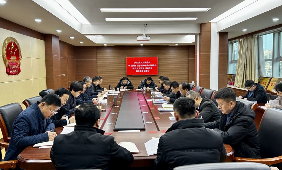新武山讯(记者 彭雪)12月13日,县人大常委会党组书记、主任孙德银主持召开武山县人大常委会党组学习贯彻习近平新时代中国特色社会主义思想主题教育调研成果交流会。县人大常委会副主任骆育喜、李燕玲、韩永红、张志林、李忠平、郭海涛参加会议,办公室、各工委、人大事务服务中心和县委主题教育办有关同志列席会议。