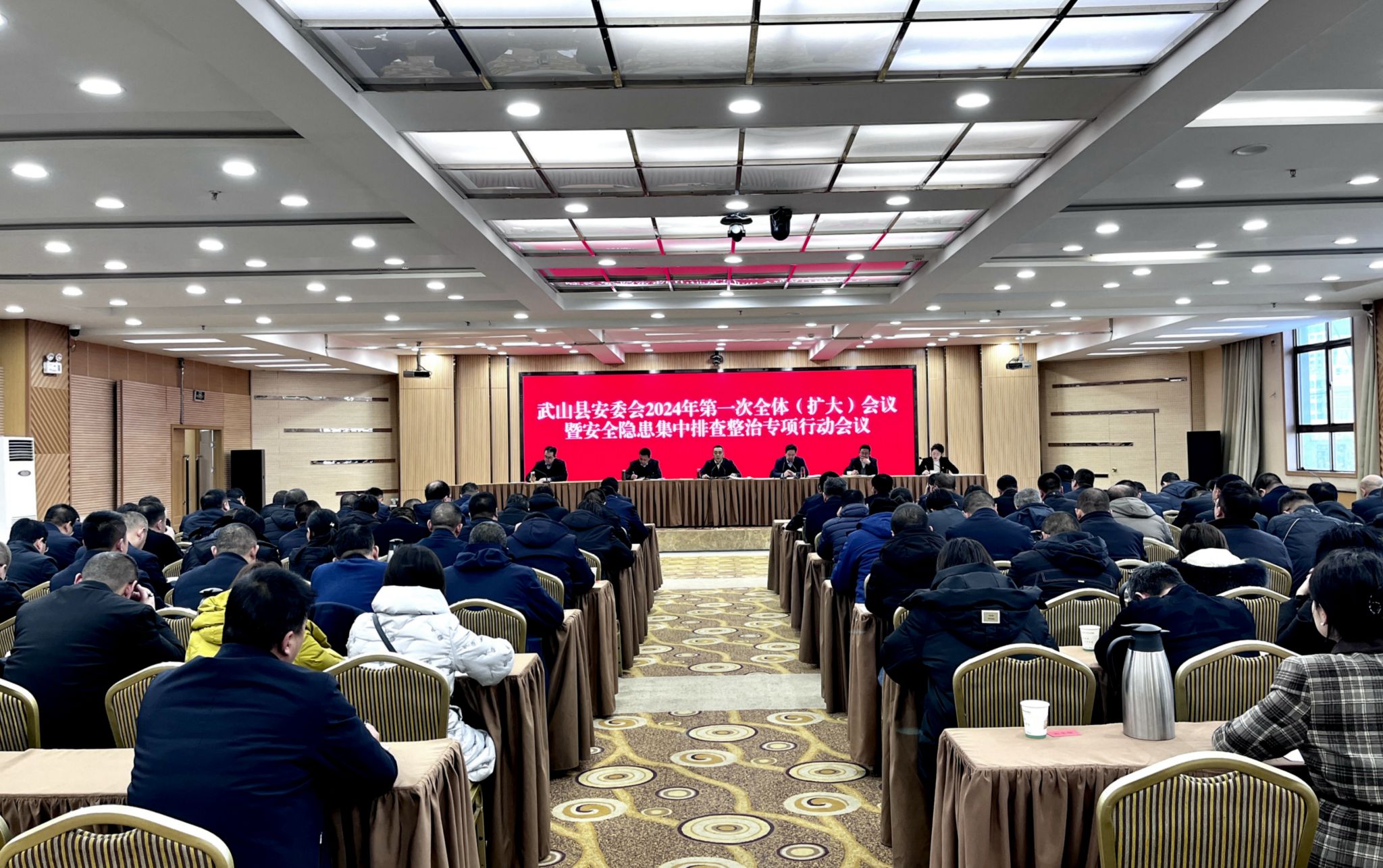 新武山讯(记者:车彤瑶)1月24日,武山县召开县安委会2024年第一次全体(扩大)会议暨安全隐患集中排查整治专项行动会议。县委书记王新强出席会议并讲话,县委副书记、县长王志成主持会议,县领导庞明全、马小红、王想成、凌鹏亮、宋昌华、常乐、郭海涛、王根红、李峰、王岩、刘耀青、邓红兵出席会议,各乡镇党委书记、县安委会成员单位和县直相关部门、县内重点企业负责人参加会议。
