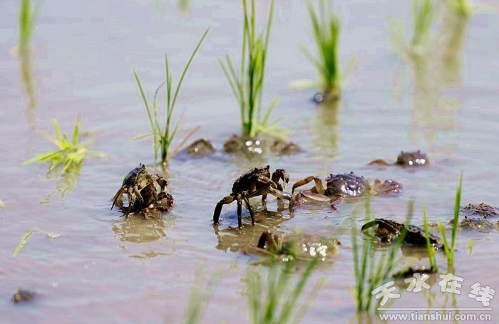 新武山讯(记者 杨彦春 董世雄)天气回暖,武山县四门镇上湾村30亩稻田地里,迎来了一批“亲戚”小螃蟹,小家伙闲庭信步田间散步,对这里的生活甚感满意。