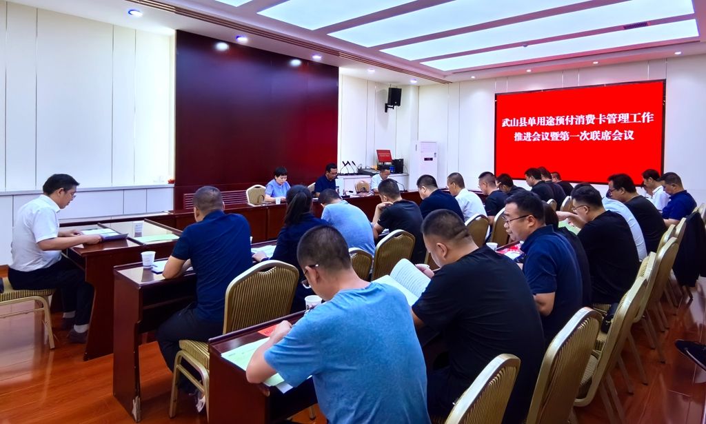 新武山讯(记者 刘慧茹)7月8日,武山县召开单用途预付消费卡管理工作推进会议暨第一次联席会议。副县长刘耀青出席会议并讲话,县商务、教育、民政、财政、人社、交通、文旅、卫健、市场监管等相关部门负责人参加会议。
