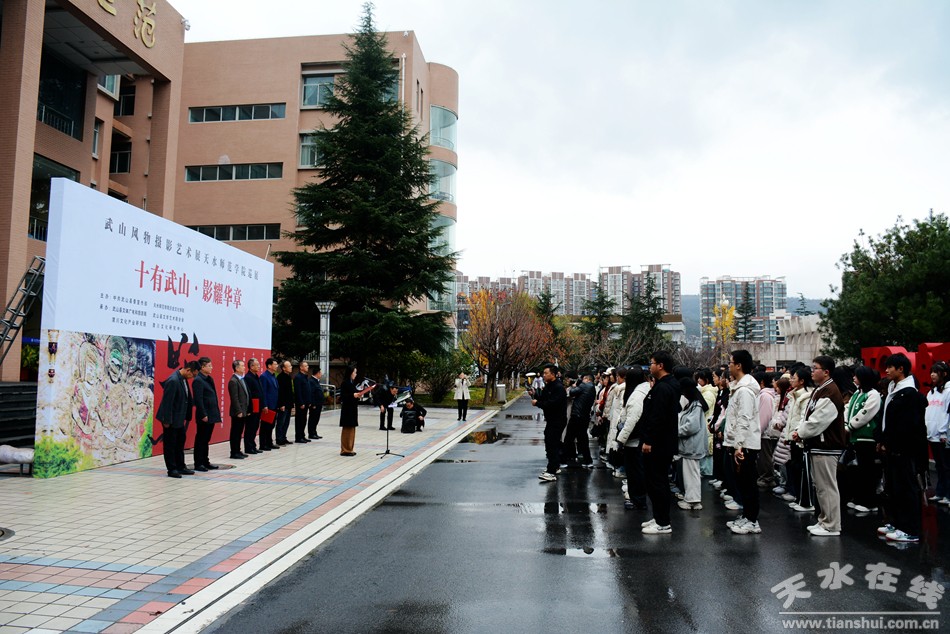 11月15日, “十有武山·影耀华章”武山风物摄影艺术展在天水师范学院巡展。天水市委宣传部副部长王刚宣布摄影艺术展开展,天水师范学院党委常委、宣传部部长武胜文讲话,武山县委常委、宣传部部长李玉兰主持开展仪式。天水师范学院历史文化学院党委书记尹志宏、天水师范学院历史文化学院院长余粮才、天水师范学院历史文化学院副院长赵世明、天水师范学院历史文化学院教授刘雁翔等出席开展仪式。市、县相关单位负责人,渭川文化产业研究院部分会员代表和天水师范学院部分师生代表共计150余人参加开展仪式。