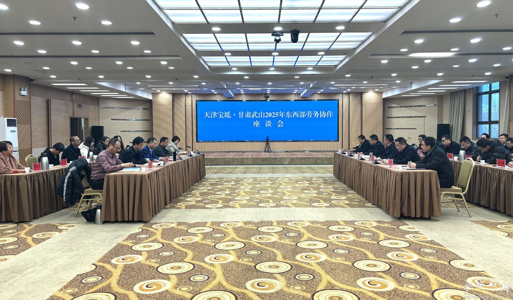 新武山讯(记者 董世雄)2月20日,天津宝坻·甘肃武山2025年东西部劳务协作对接座谈会在武山县召开。县委常委、副县长刘忠锋主持会议,副县长李峰出席,两地人社局和部分企业负责人参加。