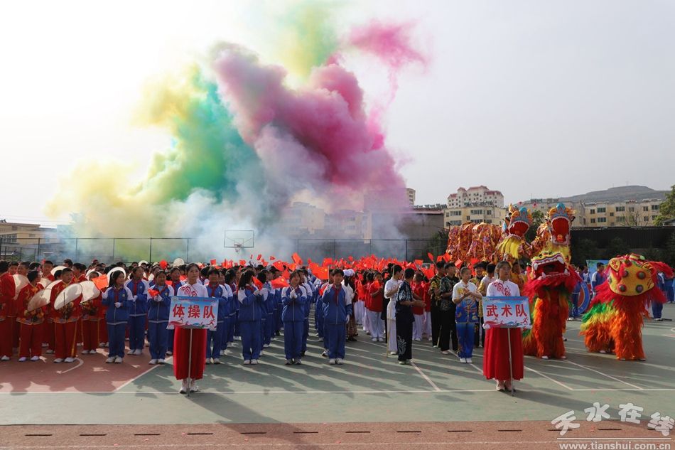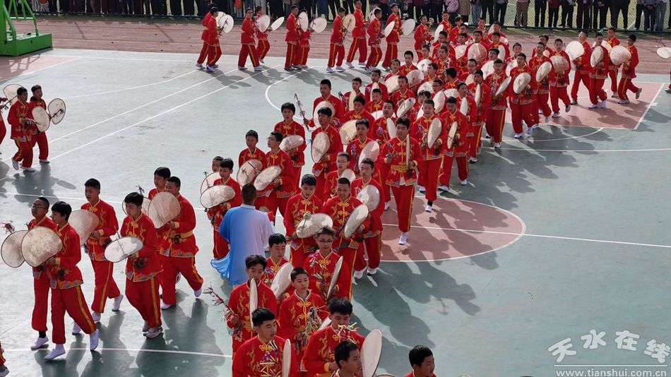 随后的节目表演,将现场气氛推向高潮。舞龙舞狮上下翻飞、腾跃舞动,尽显青春活力;武术表演刚劲有力,一招一式展现少年豪气;韵律操、广播体操动感活泼,洋溢着青春的热情;扇子舞灵动优美,如行云流水;旋鼓舞铿锵有力,鼓点震撼人心;器乐表演旋律悠扬,余音绕梁。这些节目巧妙地将武山传统非遗与学生的青春活力相结合,为全校师生及家长带来了一场视觉与听觉的盛宴,赢得了阵阵掌声与喝彩。