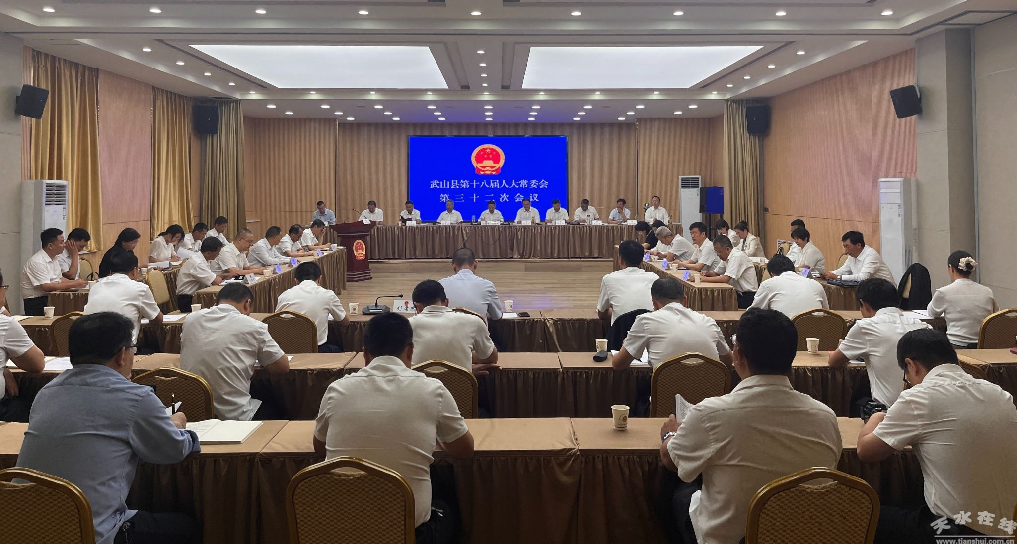 新武山讯(记者 车彤瑶)7月4日,武山县第十八届人大常委会召开第三十二次会议。县人大常委会主任孙德银主持会议,县人大常委会副主任骆育喜、韩永红、张志林、王喜来、陈文武、汪向理等25名委员出席会议。县委常委、副县长刘忠锋,县人民法院院长张伟刚,县人民检察院检察长贾虎胜以及相关单位负责同志列席会议。