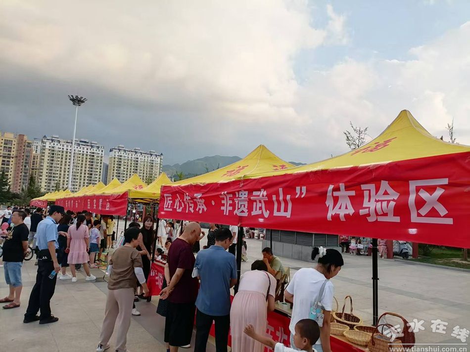 在“匠心传承·非遗武山”体验区,由武山县文旅局组织的夜光杯雕、刺绣、旋鼓、柳编、砖雕等非遗项目吸引了大量市民驻足。传承人现场展示了精湛技艺,令围观者惊叹不已。家长带着孩子在志愿者指导下尝试旋鼓、柳编等技艺。“让孩子亲手摸摸、做做,比光看书本印象深多了,能感受到我们传统文化的精巧。”家长王女士说。