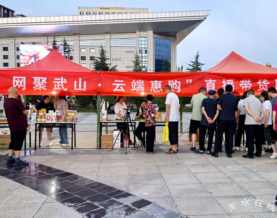“家人们看过来!这就是我们武山的‘夜光杯’,它薄如蝉翼,做工精美……”在“网聚武山·云端惠购”直播带货区,武山县商务局组织主播们热情洋溢地向全国网友推介武山浆水、蔬菜、苹果等特色农副产品和精美非遗文创。主播陈佳丽在直播间隙介绍道:“这次直播不仅是卖货,更是宣传我们武山的文化和文明理念。看到网友对武山特产和文化的兴趣,感觉特别有意义”。
