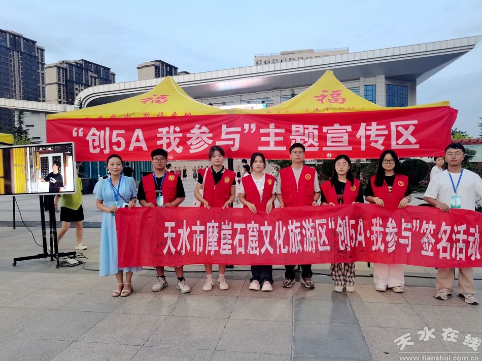 在“创5A·我参与”主题宣传区,志愿者通过精美的图片展板、详实的资料和生动的讲解,向群众展示了天水市摩崖石窟文化旅游区创建国家5A级旅游景区的成果、未来规划以及景区丰富的文旅资源。许多市民在了解情况后,主动签下了自己的名字和祝福,表达对家乡创建5A级景区的支持。“武山旅游资源这么好,创建5A是好事!我们老百姓也要从自身做起,文明旅游,为家乡添彩。”退休教师陈大爷认真地说。