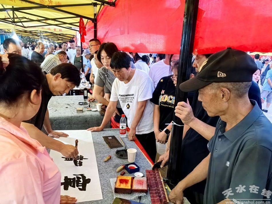 由武山县文联、博物馆、图书馆共同组成的“书香文韵·博古览今”文化惠民区,弥漫着浓厚的文化气息。在流动图书馆市民们或坐或站,翻阅着精选的读物,享受阅读的收获。流动博物馆通过图文并茂的展板,吸引了不少历史爱好者驻足细看。书画展示互动区志愿者挥毫泼墨,现场创作书法、绘画作品。“既能看书,又能了解家乡历史,还能欣赏书画,这个区域内容真丰富,文化味儿十足!”带着孩子前来体验的孙女士赞叹道。