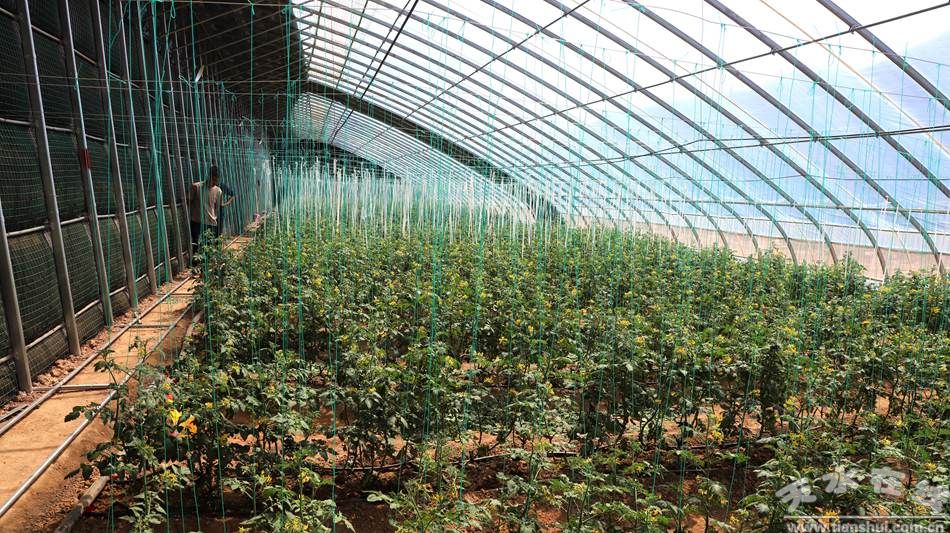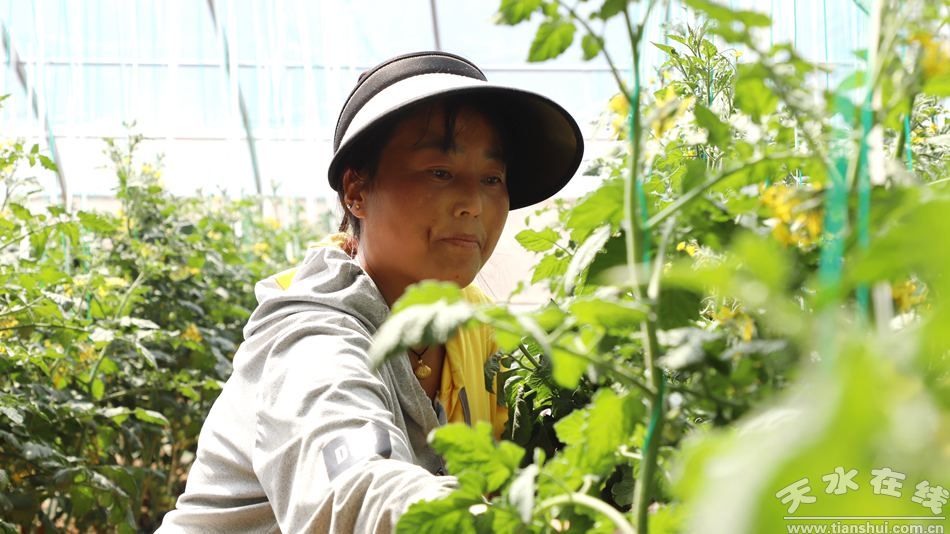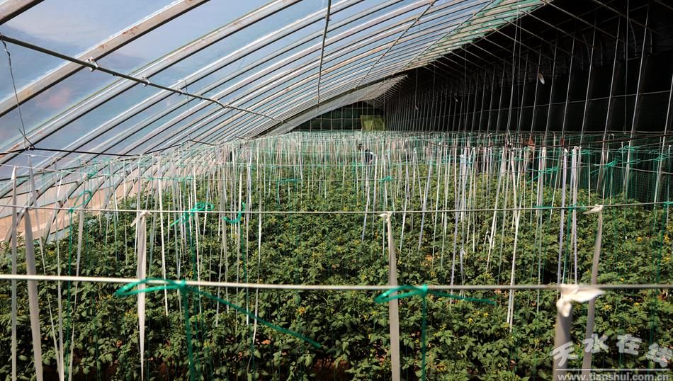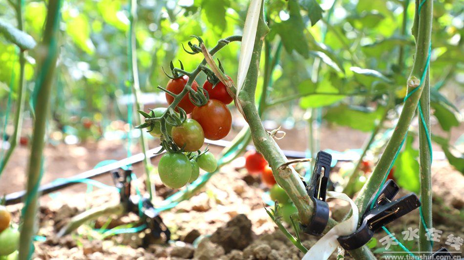 在陈门村日光温室现代设施蔬菜生产示范小区,20座温室大棚整齐排列,棚内农户正抢抓春耕时节开展田间管理,一株株玲珑小番茄长势旺盛、硕果饱满。凭借得天独厚的生长环境,这里的小番茄糖度高达13个点,品质出众。通过推广矮化密植、技术精准干预等先进种植技术,小番茄单株结果穗数从普通7-8穗提升至20多穗,园区每亩定植2600苗,单株产量3-4斤,亩产量突破一万斤,预计亩均收益可达4-5万元。