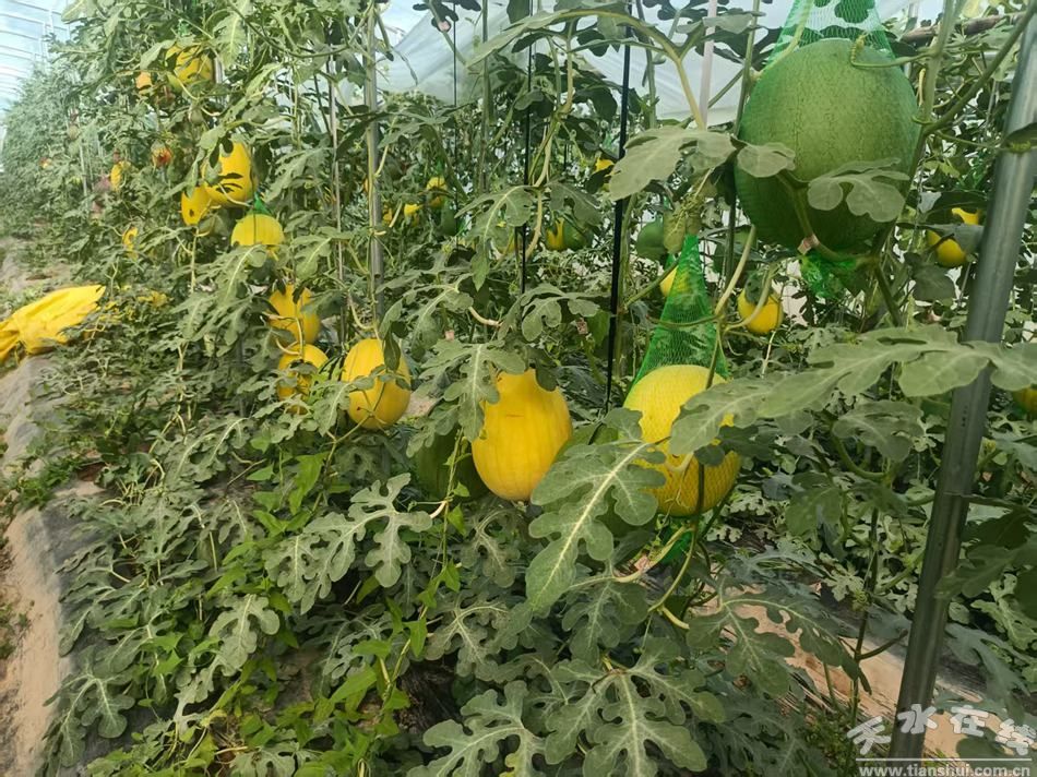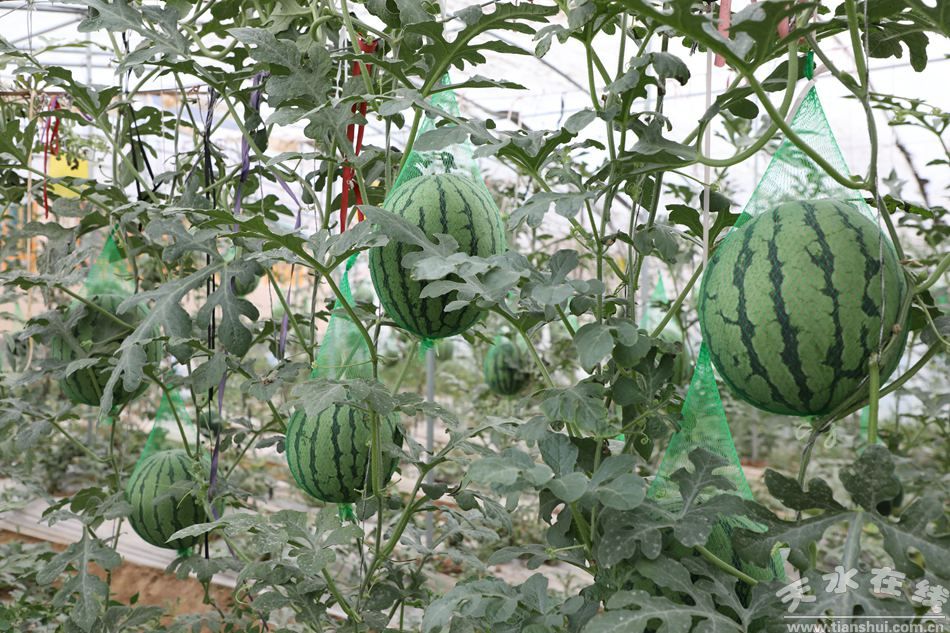 周庄西瓜采用吊蔓栽培、人工传粉、膜下滴灌等技术,一改以往趴地种植的模式,让西瓜在空中生长结果,既避免西瓜和地面接触生病,还提高了土地利用率,保证了通风透光,西瓜的品质也得到了提高。
