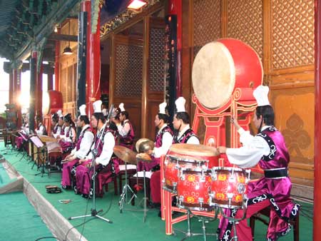 今天上午在武威文庙举行的祭孔活动,先由武威60多名孔氏后裔在大成殿前按照祖制拜祭孔子,之后由武威市领导及各界民众进行公祭,并举行祭孔大典礼乐和六佾乐舞表演。