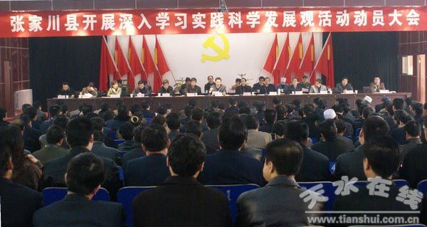 3月5日,张家川县在行政中心礼堂召开开展深入学习实践科学发展观活动动员大会,参加今天会议的有:县四大组织在家党员领导干部,县委学习实践活动领导小组成员、指导组全体人员,各乡镇党委书记,县直行政事业单位及驻县市属行政、事业、企业单位党组织科级党员干部共600多人。市委专门派出以市卫生局调研员李德祥同志为组长的市委第三指导检查组,参加并指导大会。县委副书记、县长马小龙主持大会。