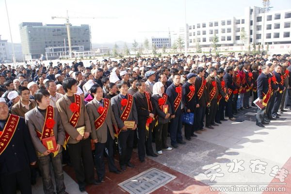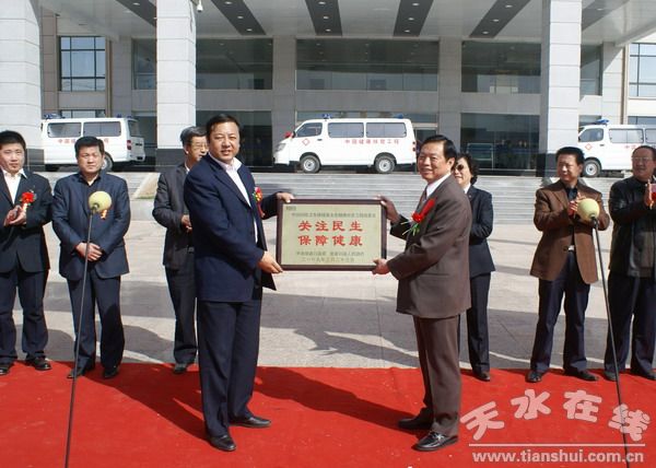 与会领导向张家川县中医院、龙山中心卫生院、恭门中心卫生院、马鹿中心卫生院、梁山卫生院、张棉卫生院、连五卫生院递交救护车钥匙。
