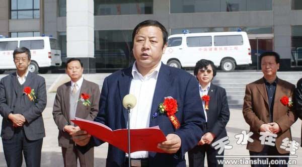 3月23日,张家川县行政广场春分拂面、春意盎然、彩球高悬、鞭炮齐鸣、礼花飞扬,在这里隆重举行中国初级卫生保健基金会资助张家川县妇女病普查普治项目启动暨救护车发放仪式。出席仪式的有:中国初级卫生保健基金会健康扶贫工程组委会副秘书长陈晓奇先生;基金会项目主任李湘波先生;基金会主任督导、主任医师苏煜女士,张家川县四大组织领导李升平、马小龙、李栋一、马正业、关春生、李兆吉、马玉凤出席了启动议式。参加议式的有各乡镇党委书记,县直有关单位负责人,县直各医疗卫生单位全体干部职工,各乡镇卫生院、卫生分院(所)院长、防保专干,全体乡村医生和受表彰的“十佳医生”“十佳护士”“二十佳乡村医生”共计460余人。县委常委、宣传部长关春生主持仪式。