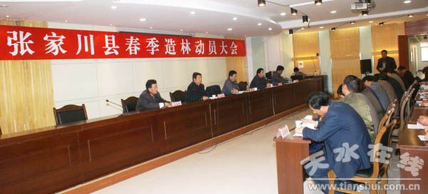 3月25日,张家川县在行政中心八楼会议室召开全县春季造林绿化动员大会,县四大组织在家领导:蒲军、马国武、王九仲、安智辉、马生贵出席会议,各乡镇党委书记,县直部门负责人参加了会议。会上,县林业局局长李伟通报了全县退耕还林情况,并宣读了公路行道树栽植技术规程;县政府副县长安智辉作了全县春季造林绿化动员讲话;县委书记蒲军作了重要讲话。会议由县委常委、统战部长马国武主持。