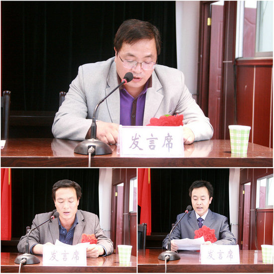 县三中、闫家中学负责人及获奖优秀教师代表在会上分别作了表态发言