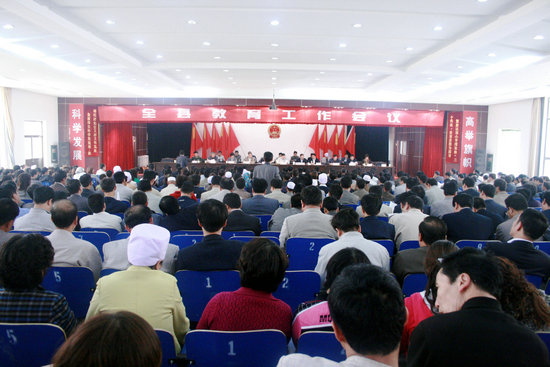 9月14日下午,张家川回族自治县隆重召开2010年全县教育工作会议。全面回顾总结近一年来全县教育工作,表彰奖励在全县教育工作中取得突出成绩的先进集体和先进个人。县委书记刘长江,县人大主任李升平,县委副书记、县长马中奇,县政协主席李栋一等县四大组织在家领导及县直各单位、各乡镇负责人,各学区、学校校长,受表彰的教育系统先进集体和优秀教师,城区学校教师代表共500人参加了会议。县委副书记、县长马中奇主持会议。
