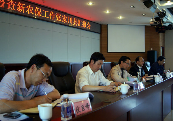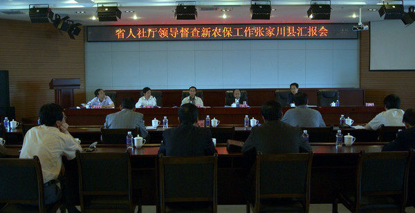 县委常委、常务副县长雒建明做了专题汇报,他说,新农保工作实施以来,张家川县制定印发了《张家川县新型农村社会养老保险试点工作实施方案》,高标准启动试点工作,通过全面调查摸底、广泛宣传动员、落实优惠政策,全力推进试点扩面。截至4月底,共征收农保金1398.65万元,参保率为72.81%;为60岁以上老人发放基础养老金356.25万元,发放率为76.20%,建立个人账户35.61%。