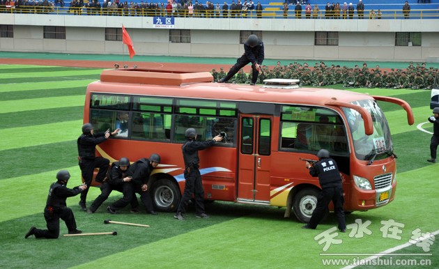 劫持人质反恐演练(图为对劫持车辆进行拦截封控)