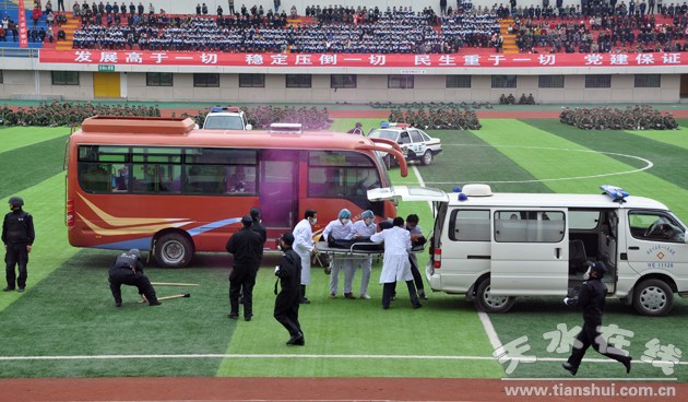 劫持人质反恐演练(图为对受伤人质进行现场救护)