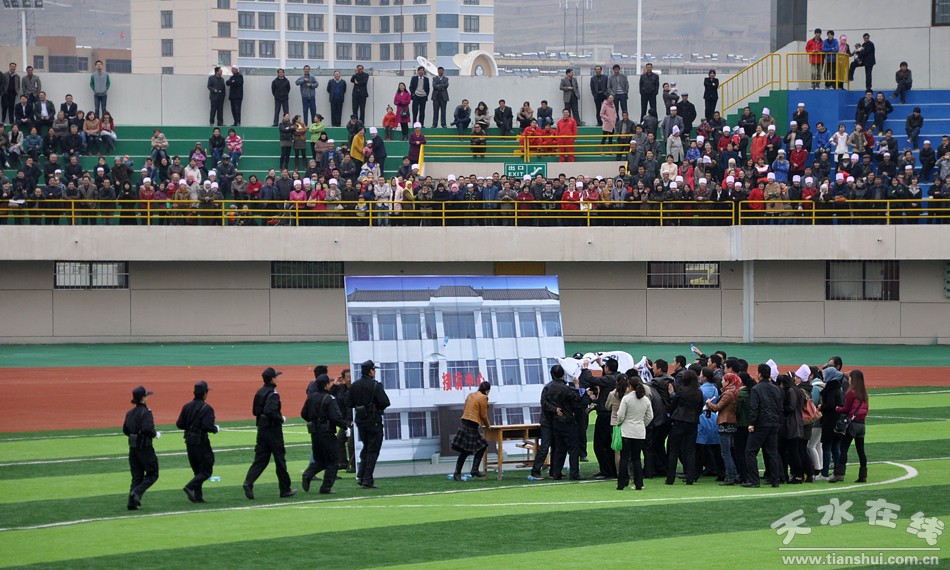 突发性群体事件处置演练(图为对闹访群众进行隔离阻拦)