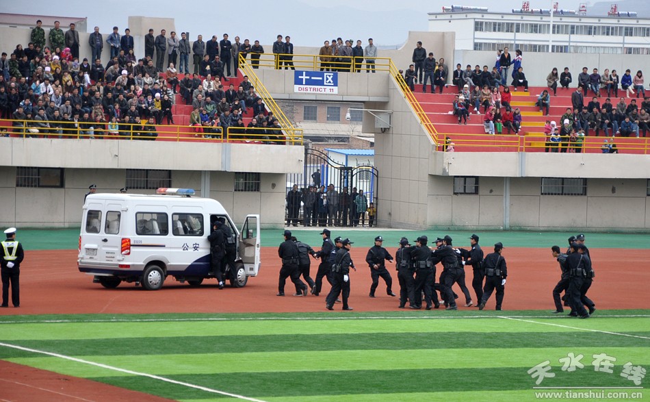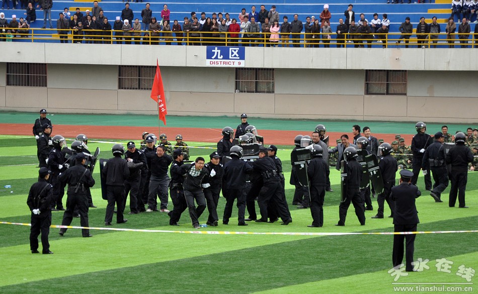 突发性群体事件处置演练(图为将首要分子抓捕带离)
