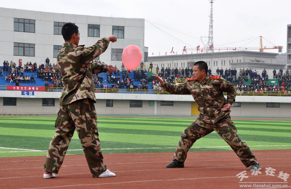应急棍术和武术表演(图为飞针穿玻璃)