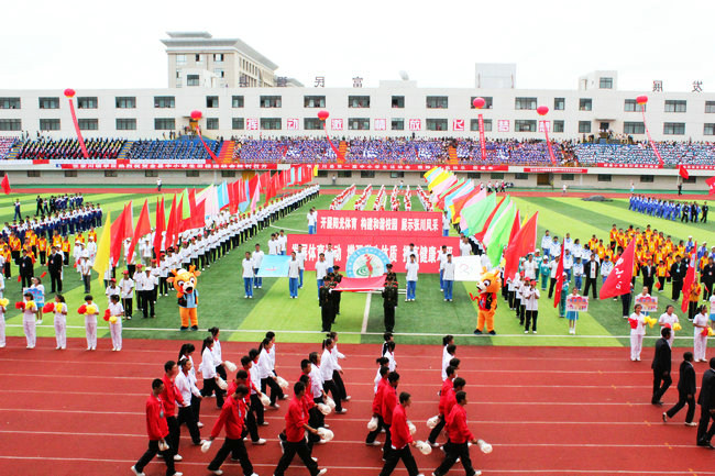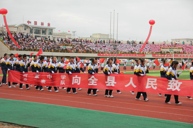 上午10时,伴随着军乐团的演奏和雄壮的《运动员进行曲》,运动会正式拉开序幕。在国旗和徽旗方队的带领下,鼓号方队、气球方队、花束方队、彩旗方队等6个方队和裁判员方阵等来自全县教育系统的36支代表队方阵依次通过,他们身着统一的服装、喊着嘹亮的口号、挥动着彩旗、昂首阔步、气宇轩昂、精神抖擞地陆续走过主席台并接受检阅。