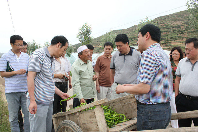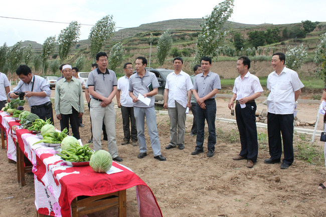 7月4日,市蔬菜办主任逯文生带领参加天水市2012年蔬菜新品种观摩会的市县领导及专家,深入天水市张家川回族自治县高原夏菜新品种展示园示范点,详细观摩了解了张家川县蔬菜新品种、新技术引进和示范推广情况。县委常委、副县长马全荣和农业局负责人陪同。
