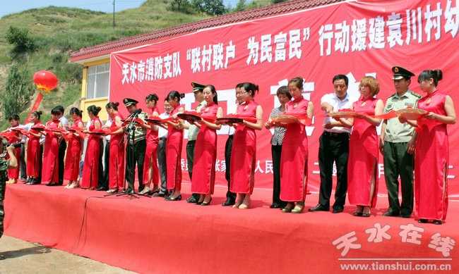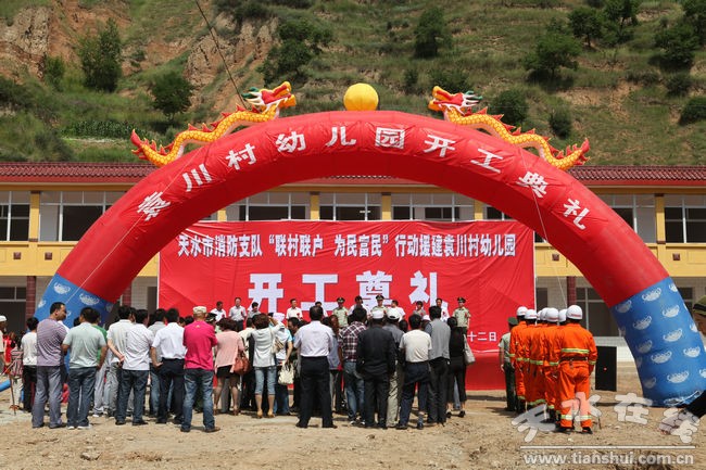 由天水市消防支队“联村联户、为民富民”行动投资建设的张家川回族自治县张家川镇袁川村幼儿园开工典礼于7月12日在袁川村隆重举行。天水市消防支队政委盛光明、天水市消防支队政治处主任院天才、后勤处处长张璓出席仪式。