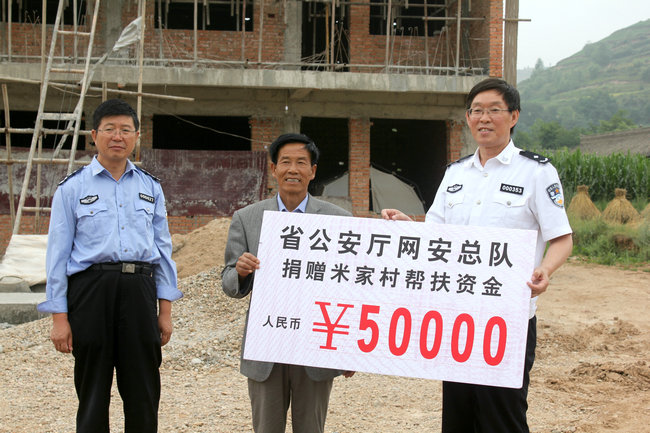 7月19日上午,省公安厅网安总队总队长马电行一行四人,深入张家川回族自治县刘堡乡米家村,亲手将“双联”行动帮扶资金5万元交到米家村支书米贵生手中。