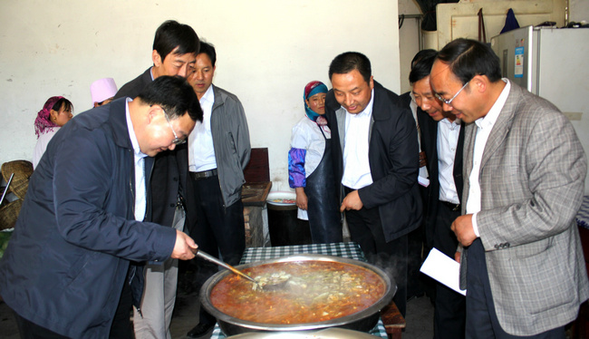 (县委书记刘长江检查刘堡中学学生集中供餐情况)