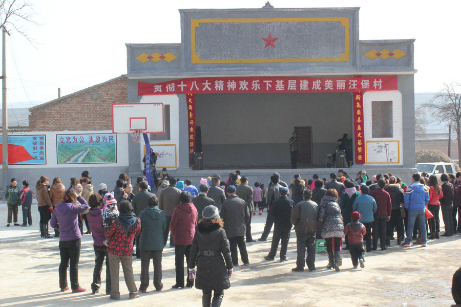 “村委会的喇叭今天一早就通知大家来村文化广场看戏,我早早就和老伴吃了早饭,拿上小板凳来占了个好地方准备看戏呢!”80岁高龄的汪堡村民汪长生指着自己前排的位置得意地说。