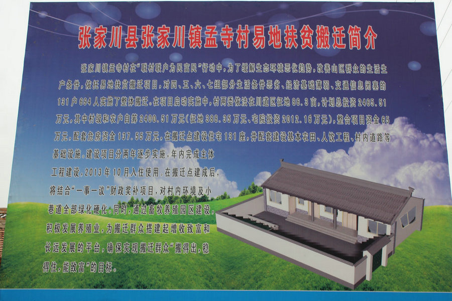 他边说边拿出县委办“双联”重点项目计划表给记者看,记者看到计划表上是这样安排部署的,2013年前在新农村两旁栽植绿化带,在村内主干道安装路灯30盏,栽植绿化树木500棵。对新农村进行农电线路改造,修建休闲广场1处,再建1400米护坡及桥涵2座,2013年底前新建幼儿园和幸福院1处,修建孟寺村至天平二级路之间的桥梁及道路。2014年底修建规模养殖小区1处和村小学办公楼一栋,完成59户农民的易地搬迁。