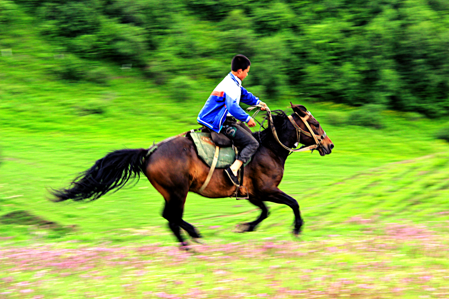 昨天刚结束小学六年级毕业考试的他,今天已经迫不及待的驰骋在广袤的草原上了。问起考试成绩如何,他憨憨的笑着说,平时在班上属中上水平,这次考试复习充足,发挥正常,一定没有问题。“这个暑假,我要在爷爷、叔叔的帮助下再提高自己的骑术。当一名有知识的好骑手一直以来是我的一个梦想!”