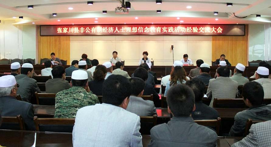 为深入贯彻落实省市非公有制经济人士理想信念教育实践活动电视电话会议精神,引导广大非公有制经济人士助推张家川非公经济跨越式发展,7月11日下午,张家川回族自治县在行政中心八楼会议室召开非公有制经济人士理想信念教育实践活动经验交流会。县委常委、县委统战部长马玉凤出席会议并讲话,政府副县长杜根祥主持会议,县人大副主任王九仲、县政协副主席马玉萍出席会议。各基层分会负责人、县工商联常委、执委以及广大会员和非公经济人士共120人参加会议。
